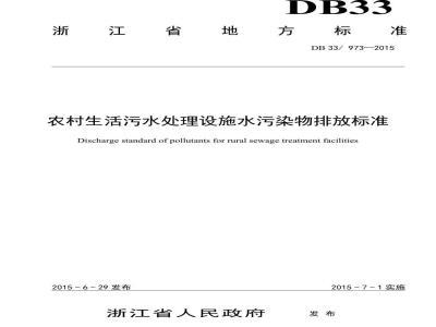 DB33 973-2015 农村生活污水处理设施水污染物排放标准