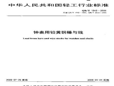 本标准白实施之1起,代替原轻工业部发市的轻工行业标准QB/T1542-1992钟用铅黄铜本与线剂QB/T1910-1993&表用铅铜栋与线3范固