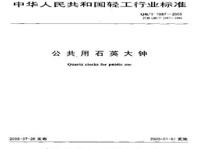 本标准白实施之日起,代替原中国轻工总会发布的轻1.行业标准QB/T1987-1994建筑用石英大钟