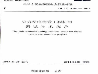 1.0.4火力发电建设工程机组调试工作,除应符合本规范外,尚应符合国家和行业现行有关标准的规定。DL/T5294—2013