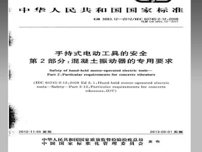 GB 3883.12-2012 手持式电动工具的安全 第2部分:混凝土振动器的专用要求