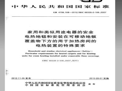 GB 4706.108-2012 家用和类似用途电器的安全 第2部分:电热地毯和安装在可移动地板覆盖