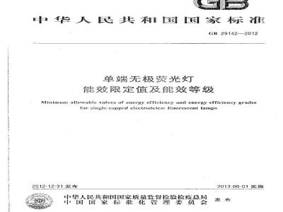 GB 29142-2012 单端无极荧光灯能效限定值及能效等级