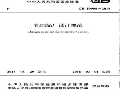 现批准“乳制品)设计规范》为国家标准,编号为GB509982014,白2015年3月1日起实施,其巾,第.5.2、4.7.(1)、4.8.2、10.1.1(2)条(欧)为强制性条义,必须严格执行,