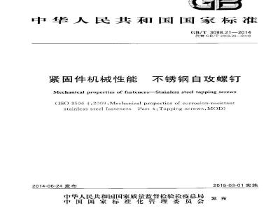 GB/T 3098.21-2014 紧固件机械性能 不锈钢自攻螺钉