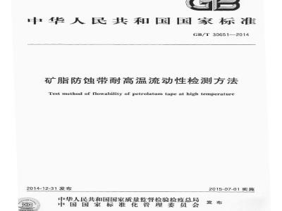 矿脂防蚀带耐高温流动性检测方法Test method of fiowability of petrolatum tape at high temperature2014-12-31发布