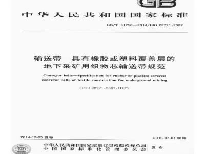 GB/T31256—2014/ISO22721.2007输送带具有橡胶或塑料覆盖层的地下采矿用织物芯输送带规范