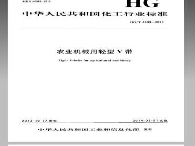 本标准规定了农业机械用轻型V带(以下简称轻V带)的结构、型号和标记、截面尺寸、要求、试验方法、检验规则、标志、标签、包装、运输和存。本标准适用于水稻联合收割机、微耕机、园林机械等机械用V带。2规范性引用文件