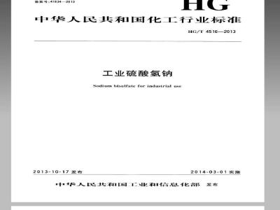 本标准规定了工业硫酸氢钠的分型·要求·试验方法,检验规则·标志,标签·包装,运输、购存本标准适用于硫酸芒硝法和亚氯酸钠副产回收生产的工业硫酸氢钠·主要用作酸性染料的助染剂、矿物分解的助熔剂医药消毒剂和洗涤剂、硫酸盐和钠矾的原料,有机合成的催化剂:还用作酸度调节剂、二氧化氧活化剂:还用于石油钻井及土壤改良等方面。2规范性引用文件