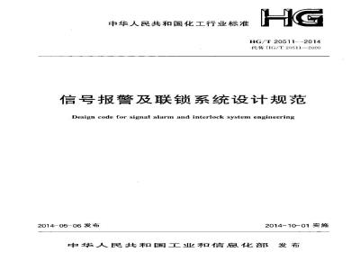 Design code for signal alarm and interlock system engineeringHG/T20511—2014