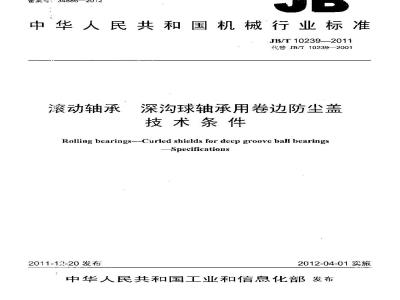 JB/T 10239-2011 滚动轴承 深沟球轴承用卷边防尘盖 技术条件