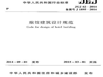 现批准旅馆建筑设计规范》为行业标准,编号为汀622014,自2015年3月1日起实施。其中,第1.1.9、4.1.10条为强制性条文,必须严格执行。原《旅馆建筑设计规范》J(汀62一90同时废: