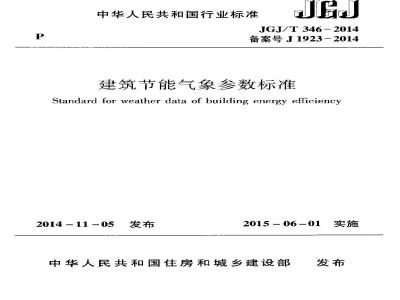 Staridlard for wcather data of building energy efficiencyJGJ/T 346 - 2014