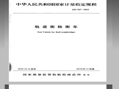 7.1.1.1轨道衡标准装置须取得由国家质检总局颁发的社会公用计量标准证书。轨道衡标准装置的计量标准器一标准轨道衡,按照其授权可开展的检定项目,检定TeDK、TeFK、T,型及其他新型检衡车。7.1.1.2用F等级码500kg~3t作为计量标准器,检定磁码检衡车内M12等级础码和磁码小车。