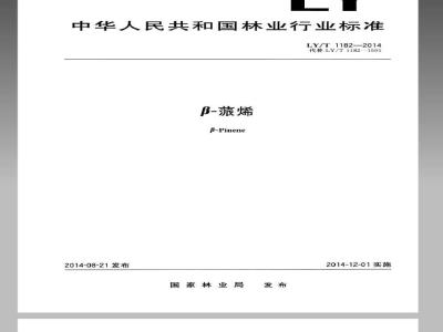 本标准按照GB/T1.1-2009给出的规则起草。本标准代替LY/T11821995《β-藏烯》。本标准与LY/T1182—1995相比,除编辑性修改外,主要差异为颜色的测定改用铂-钻法,色号修订为30;相对密度的测定修改为密度计法;β-烯含量计算中不包含月桂烯;β-烯含量的测定改用毛细管柱色谱分析;取消了β-派烯含量80%和90%的产品级别。本标准由中国林业科学研究院林产化学工业研究所提出。本标准由中国林业科学研究院林产化学工业研究所归口。LY/T1182—2014