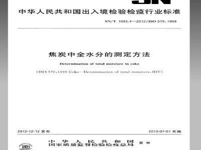 SN/T1083的本部分规定了焦炭中全水分的测定方法。本部分适用于高炉焦炭,铸造焦炭和其他高温焦化产品中的全水分测定。2规范性引用文件