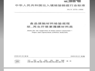 SN/T 2275-2009 食品接触材料检验规程 纸、再生纤维素薄膜材料类