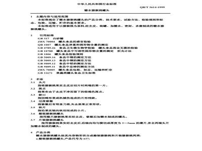 本标准规定了糖水称猴桃罐头的产品分类、技术要求、试验方法、检验规则和标志、包装、运输、贮存的基本要求。本标准适用于以猕猴桃为原料,经去皮、装罐、加糖水、密封、杀菌制成的糖水琳猴桃罐头。 QB/T 3614-1999 糖水猕猴桃罐头 QB/T3614-1999 标准下载解压密码:www.bzxz.net