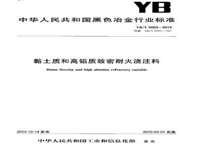 YB/T 5083-2014 粘土质和高铝质致密耐火浇注料