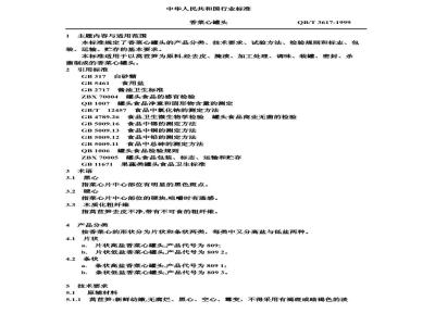 本标准规定了香菜心罐头的产品分类、技术要求、试验方法、检验规则和标志、包装、运输、贮存的基本要求。本标准适用于以莴苣笋为原料,经去皮、腌债、加工处理、调味、装罐、密封、杀菌制成的香菜心罐头。 QB/T 3617-1999 香菜心罐头 QB/T3617-1999 标准下载解压密码:www.bzxz.net
