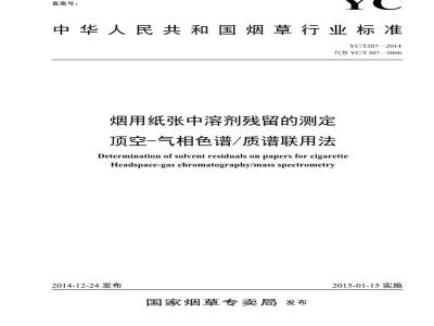 YC/T 207-2014 烟用纸张中溶剂残留的测定 顶空气相色谱质谱联用法