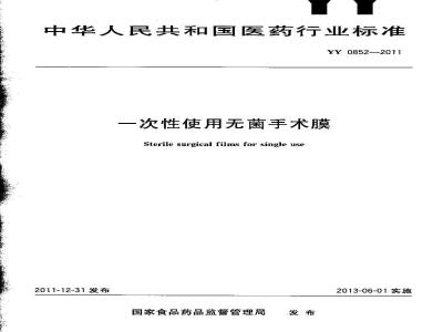 YY 0852-2011 一次性使用无菌手术膜