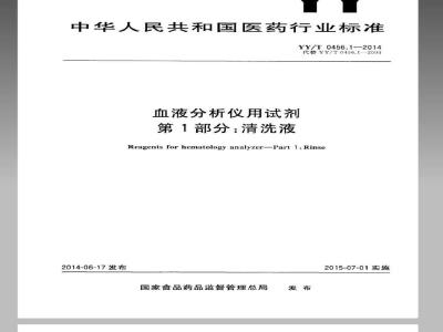 YY/T0456%血液分析仪用试剂》分为5部分第1部分:清洗液;