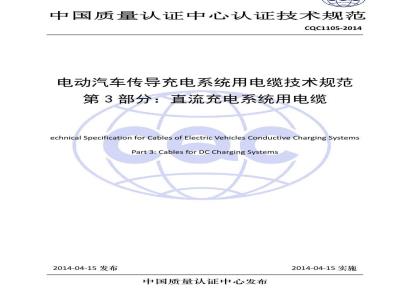 CQC 1105-2014 电动汽车传导充电系统用电缆技术规范 第3部分:直流充电系统用电缆