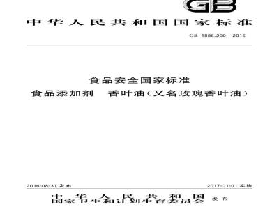 GB 1886.200-2016 食品安全国家标准 食品添加剂 香叶油(又名玫瑰香叶油)