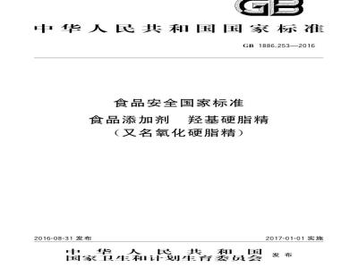 GB 1886.253-2016 食品安全国家标准食品添加剂 羟基硬脂精(又名氧化硬脂精)