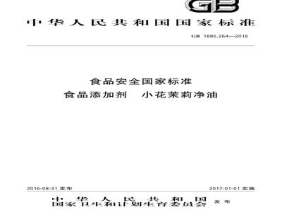 GB 1886.264-2016 食品安全国家标准 食品添加剂 小花茉莉净油