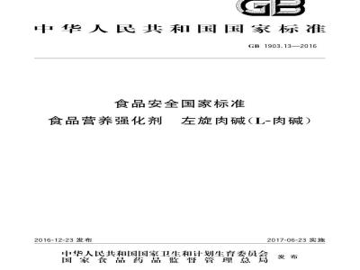 GB 1903.13-2016 食品安全国家标准 食品营养强化剂 左旋肉碱(L-肉碱)