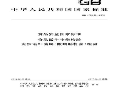 本标准代替GB4789.402010《食品安全国家标准食品微生物学检验阪崎肠杆菌检验》、