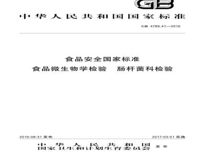 GB 4789.41-2016 食品安全国家标准 食品微生物学检验 肠杆菌科检验