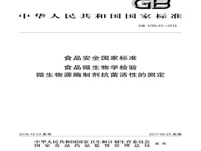 GB 4789.43-2016 食品安全国家标准 食品微生物学检验 微生物源酶制剂抗菌活性的测定