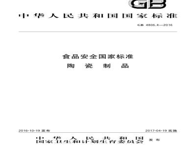GB 4806.4-2016 食品安全国家标准 陶瓷制品