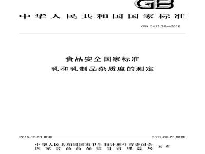 本标准规定了乳和乳制品杂质度的测定方法GB5413.30—2016