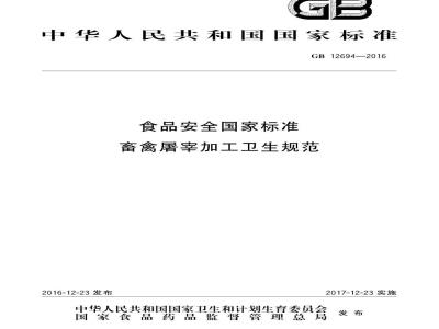 GB 12694-2016 食品安全国家标准 畜禽屠宰加工卫生规范