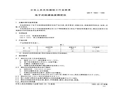 本标准适用于电子式纸透油度测定仪(以下简称测定仪)的生产验收和质量评定,测定仪使用中的周期技术状态检查亦应参照使用。2引用标准