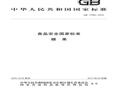 本标准代替GB9678.1—2003《糖果卫生标准》和GB17399—2003《胶基糖果卫生标准》。本标准与GB9678.1—2003和GB173992003相比,主要变化如下:标准名称修改为“食品安全国家标准修改了范围;