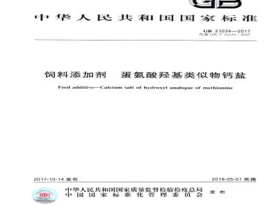 GB 21034-2017 饲料添加剂 蛋氨酸羟基类似物钙盐