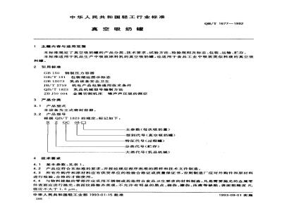 本标准规定了真空吸奶堆的产品分类、技术要求、试验方法、检验规则及标志、包装、运输、贮存。本标准适用于乳品生产中吸放原料乳的真空吸奶雄,也适用于食品工业中吸放类似料液的真空吸料罐。 QB/T 1677-1992 真空吸奶罐 QB/T1677-1992 标准下载解压密码:www.bzxz.net