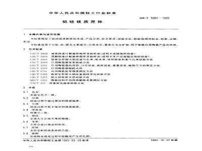本标准规定了铝硅镁质匣钵的术语、产品分类、技术要求、试验方法、检验规则和标志、包装、运输、贮存。本标准适用于以铝、硅、镁为主要成分,以莫来石、荃青石为主矿相,用于装烧日用陶瓷产品的匣钵。 QB/T 1683-1993 铝硅镁质匣钵 QB/T1683-1993 标准下载解压密码:www.bzxz.net