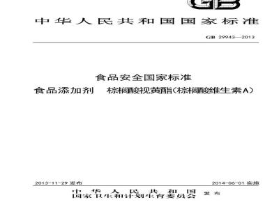 GB 29943-2013 食品安全国家标准 食品添加剂 棕榈酸视黄酯(棕榈酸维生素A)