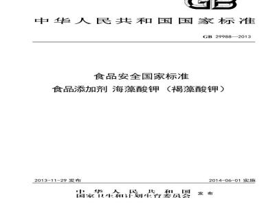 GB 29988-2013 食品安全国家标准 食品添加剂 海藻酸钾(褐藻酸钾)