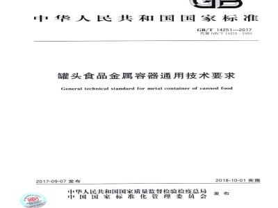 罐头食品金属容器通用技术要求General technical standard for metal container of canned food2017-09-07发布