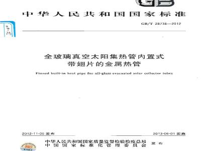 GB/T 28738-2012 全玻璃真空太阳集热管内置式带翅片的金属热管
