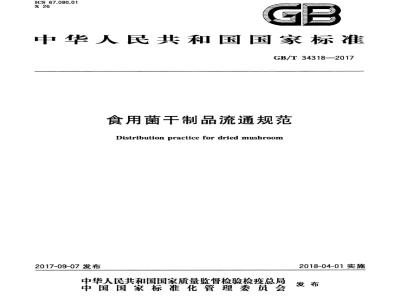 GB/T 34318-2017 食用菌干制品流通规范