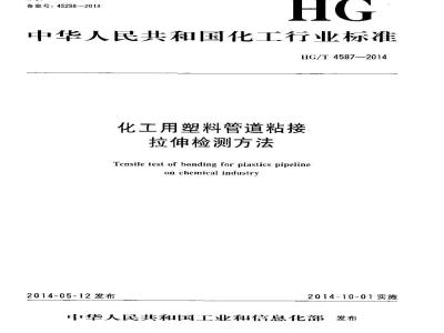 化工用塑料管道粘接拉伸检测方法IIG/T 4587-—2014