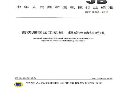 JB/T 12865-2016 畜类屠宰加工机械 螺旋自动刨毛机